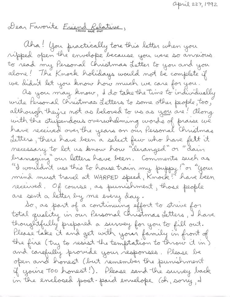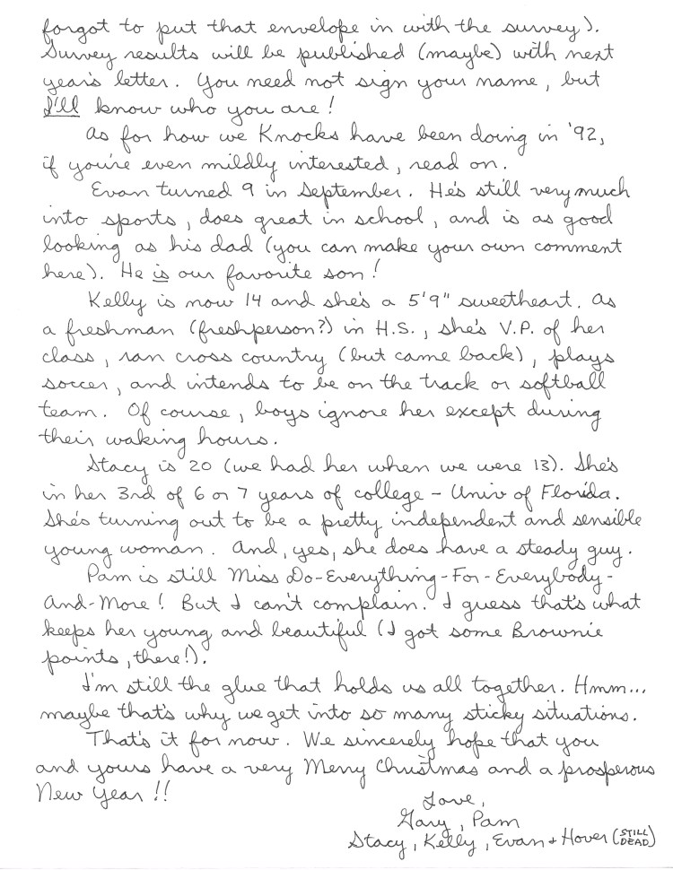 (1992) Knock Christmas Letter Survey Posted on December 9, 2019December 14, 2020 by garyknockyahoocom in 1990's Related