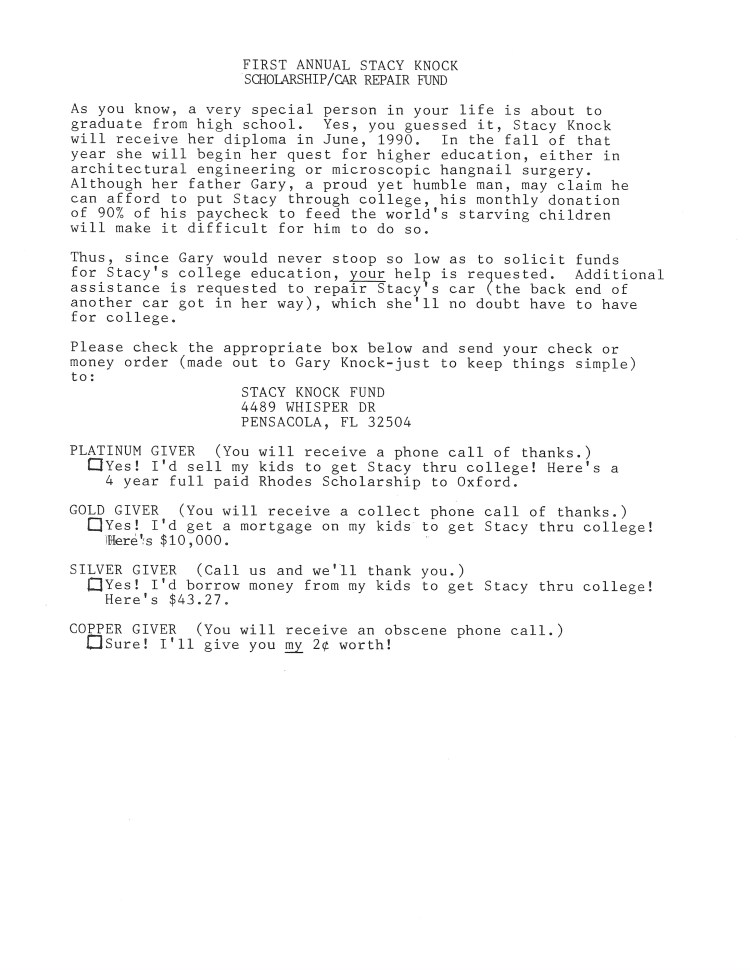(1989) Stacy Scholarship Fund Posted on December 12, 2019December 14, 2020 by garyknockyahoocom in 1980's Related