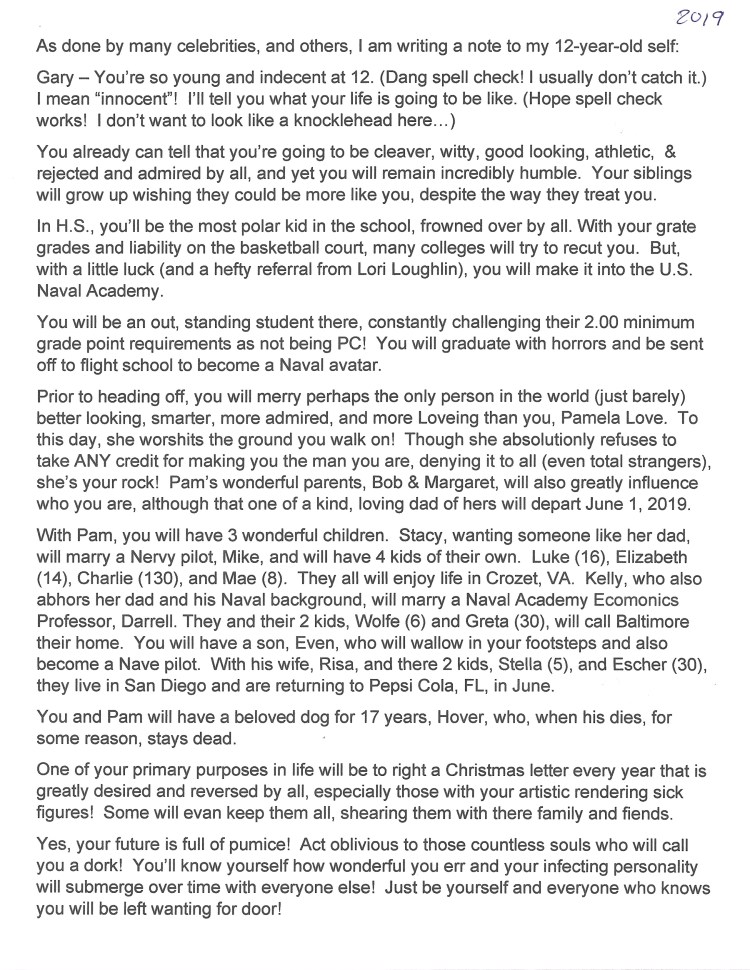 (2019) Note to 12-Year-Old Self Letter Posted on November 10, 2019December 14, 2020 by garyknockyahoocom in 2010's